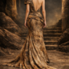 The warm tones of antique bronze, sand gold, and desert earth capture the magic of sunset over ancient temples, blending Eastern mythology with modern haute couture craftsmanship.