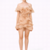 Ivory Petal Ruffle Mini Dress – Off-Shoulder Couture Cocktail Gown