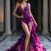 Be the first to review “Magenta Ombre Ruffled Couture Gown – Deep Plunge Evening Dress with High Slit, Luxury Gradient Pink Purple Formal Dress”