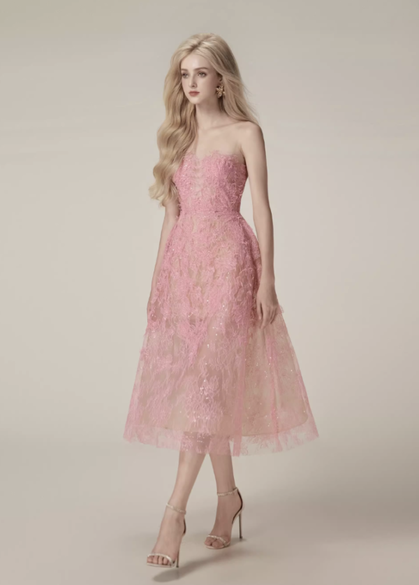 Be the first to review “Rosé Lumière Strapless Lace Midi Dress”
