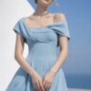 • Structured off-shoulder neckline