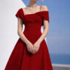 Scarlet Off-Shoulder A-Line Evening Gown – Structured Couture Midi Dress